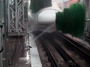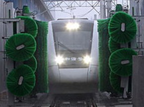 鐵路列車車體表面清洗神器——德高潔軌道列車自動清洗機