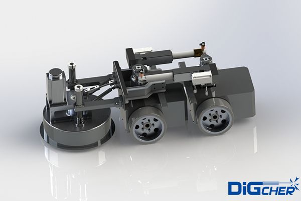 機器人采用四輪驅(qū)動,負(fù)載能力強,可在在垂直面及天花板面任意行走;電機驅(qū)動,具有穩(wěn)定可靠的立面吸附措施;機器人前端的毛刷盤負(fù)責(zé)清理和回收模板表面的粉塵和殘渣。