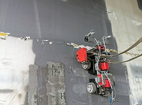 拋丸爬壁機器人在大型鋼鐵結構外立面除銹清理中的應用
