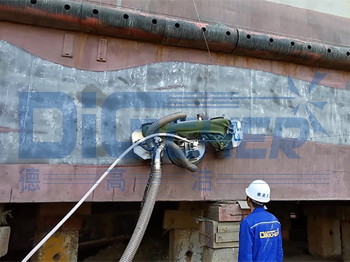 另外值得一提的是,德高潔超高壓水除銹爬壁機(jī)器人無(wú)需借助任何輔助支撐機(jī)械可以攜帶200kg負(fù)載,可以搭載超高壓水清洗機(jī)構(gòu)、噴涂或噴砂工具,實(shí)現(xiàn)除漆和再噴涂同步作業(yè)。