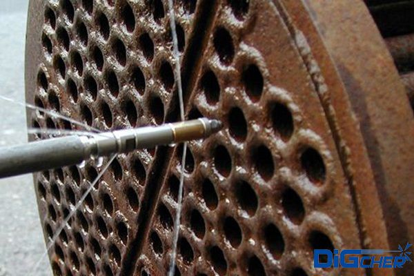 2、可防止刷管過程中的堵管現(xiàn)象,對于一般運行中的堵管,如果時間不長,結(jié)塊不十分硬的,用高壓噴槍也可將其沖開;