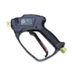 高壓水槍是高壓清洗機(jī)的重要組件之一,它主要負(fù)責(zé)清洗作業(yè)的開始與停止。高壓水槍通過高壓管路總成連接到高壓水泵的輸出端,是高壓清洗機(jī)的執(zhí)行兼控制系統(tǒng)。高壓水槍可以按排放壓力的控制閥形式做進(jìn)一步定義,主要可分為兩種,溢流型和截流型。溢流型高壓水槍的工作原理是在扣動(dòng)扳機(jī)時(shí),槍上的溢流閥關(guān)閉,壓力得以迅速增大從而形成高壓水射流,當(dāng)松開扳機(jī)時(shí),槍上的溢流閥打開,水從溢流閥流出,從而釋放壓力。而截流型高壓水槍的工作原理則完全不同,扣動(dòng)扳機(jī)時(shí),壓力增大,當(dāng)松開扳機(jī)時(shí),高壓水仍保持在系統(tǒng)中,通過高壓水泵上的溢流閥流出或是循環(huán)利用。